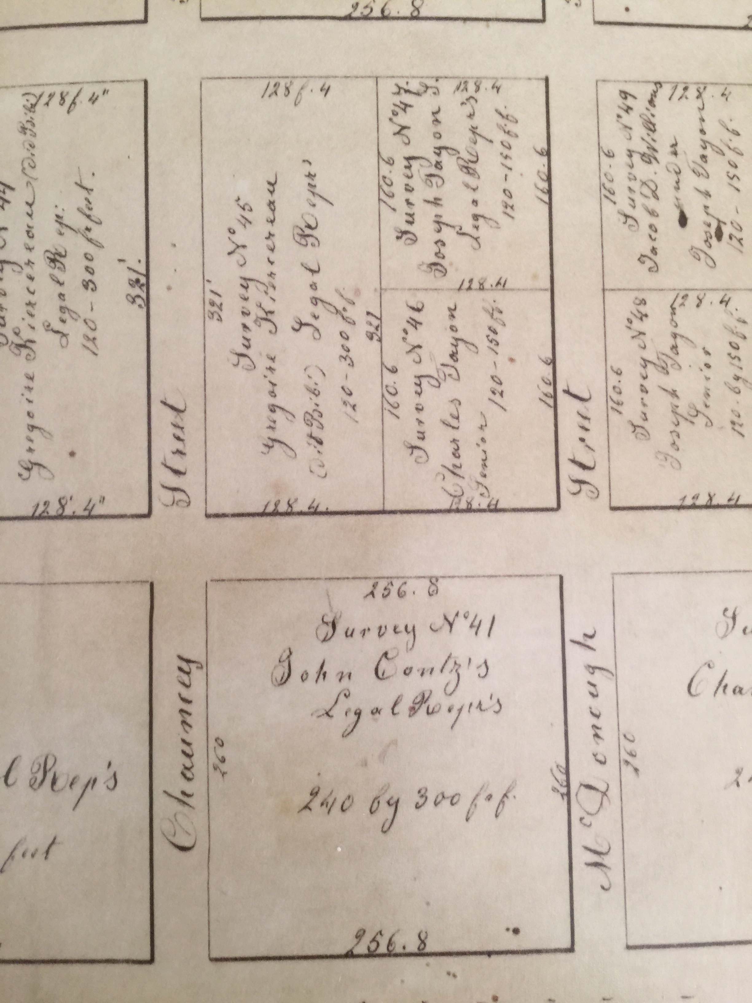 Auguste Chouteau made the first survey of the village, under order of the Spanish authorities, but the map of the village, has not been preserved, according to Gabriel La Trail, one of the oldest residents of St. Charles in 1824, who said “he assisted in the survey”. He was one of the principal witnesses before Commissioner Hunt testifying as to the ownership and occupancy of many of the lots of the village. Another who helped with the survey was Louis Barrada the Senior.