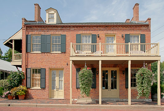Further south on St. Charles’ Main Street, one encounters other vestiges of Bryan and Morrison’s route to their salt lick. Farmer’s Home is an example of the many inns and mercantiles that line the street…