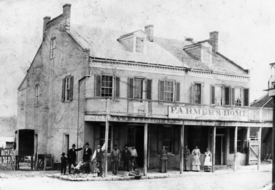 Circa 1805 – In 1817 when Alexander McNair owned this property, he would add on to the earliest portion of the building, keeping the French influence. McNair’s wife was Margarite Regal, the daughter of a French Marquis. In 1820, he defeated William Clark, to become our State’s first Governor. Although he lived in St. Louis with his wife and children, he would stay here when he needed to conduct State business. The building was a tavern, where J.J Dozier the Innkeeper would invite the Legislature and other visitors to the town to stay at the establishment when St. Charles was Missouri’s first State Capitol 1821-1826. At that time the cost of lodging was “2 bits a night (or 25 cents) and you could get Chicken Fixings for 3 bits or 37 and one-half cents”. McNair died on March 18, 1824 while still in office. The building would continue to serve as an Inn, and was always a hub of activity, since visitors would arrive on the nearby ferry and have to pass the Inn on their way to the State Capitol, ensuring its success. At one time the inn was known as the “Bear Sign” and owned by a German named Valentine Schmidt. In 1853 the name according to the St. Charles newspaper named the Reville, was changed to Farmer’s Home and managed by the German innkeeper named Frances Bierbaum. On the 26th of February 1876, the Inn was struck by the great tornado. Stories tell of a man in his bed on the second floor who was picked up and thrown into the street without even being hurt. [v]
