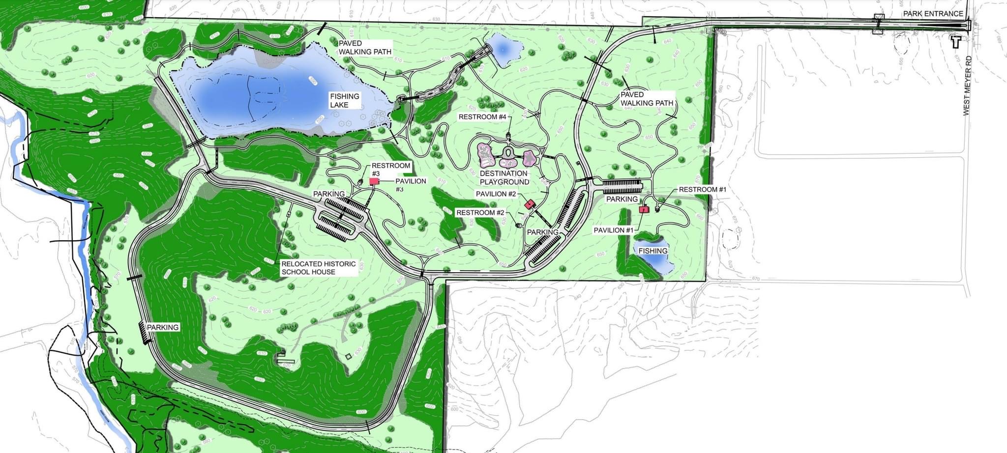 Douglass Schoolhouse was moved to Oglesby Park and materials used to recreate what the schoolhouse must have looked like. It is located near the back of the park near the lake.