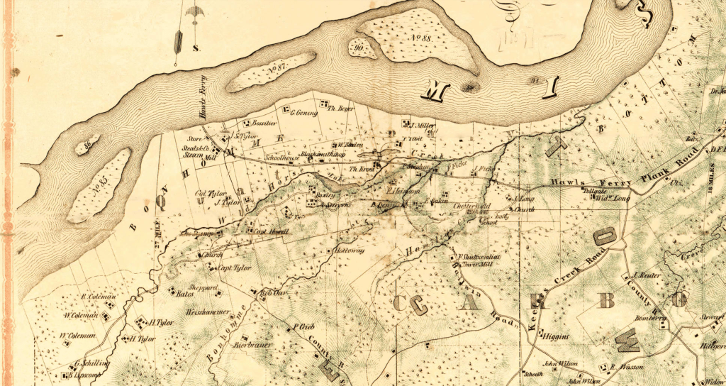 Because of this great work, the map is carefully preserved, yet made available to everyone. Since then, I wanted to know more of the maps other great mysteries. Who was its’ creator and why? What stories does this map share? That has been quite a journey as well, leading to all kinds of wonderful new discoveries of St. Charles and its history. Sometimes, when trying to discover the stories found in old documents and maps, you have to travel to the time in which the people lived. This map does help one to do that.